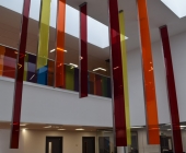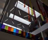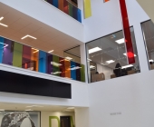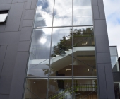 This new four storey 3000 m2 building offers a variety of large and small computer labs, project spaces, a student hub spanning three floors, academic and clerical offices and postgraduate spaces.